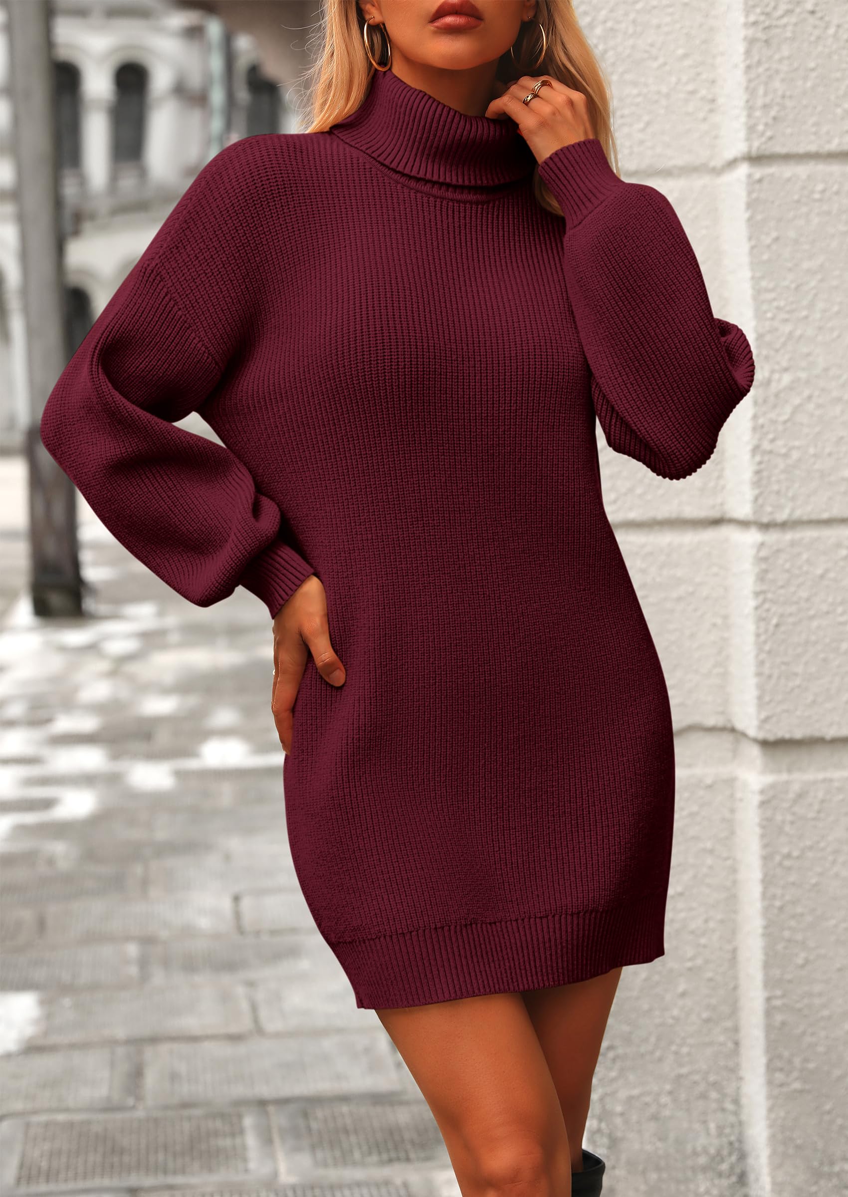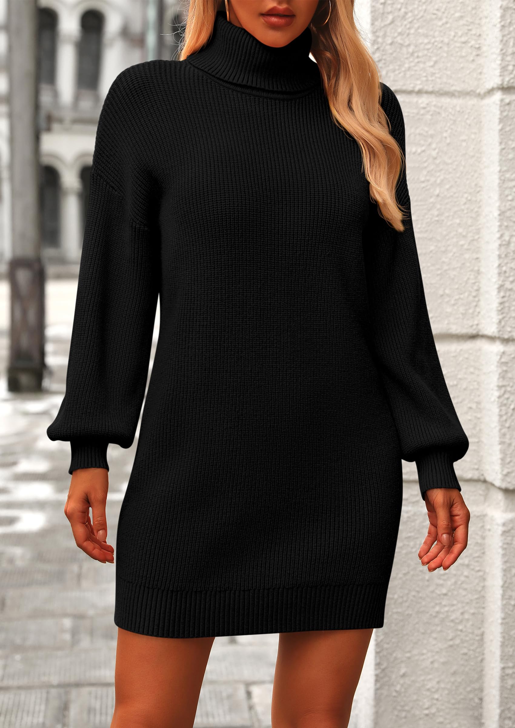 ALINA – RIPPSTRICK-KLEID MIT TURTLENECK UND PUFFÄRMELN