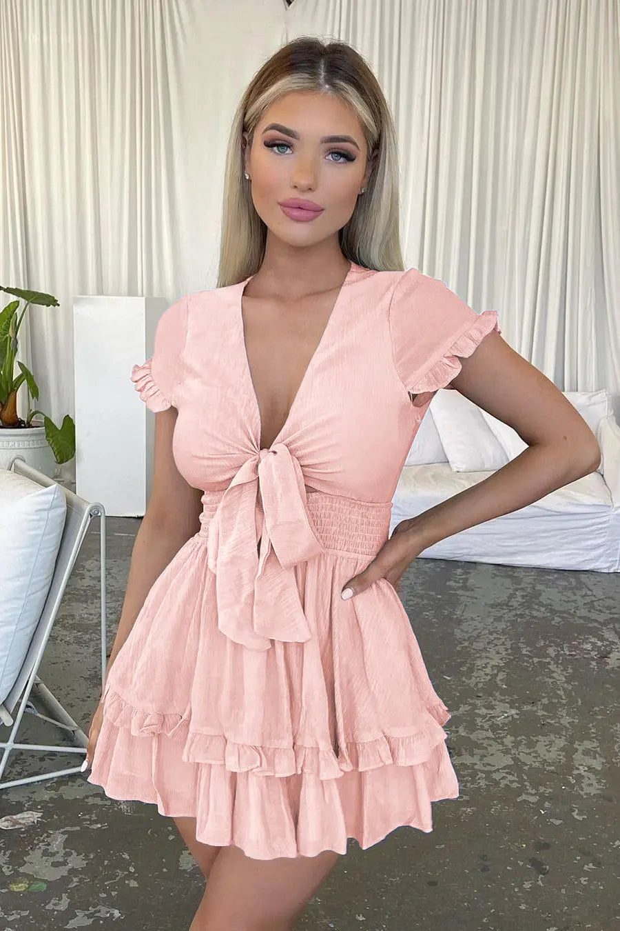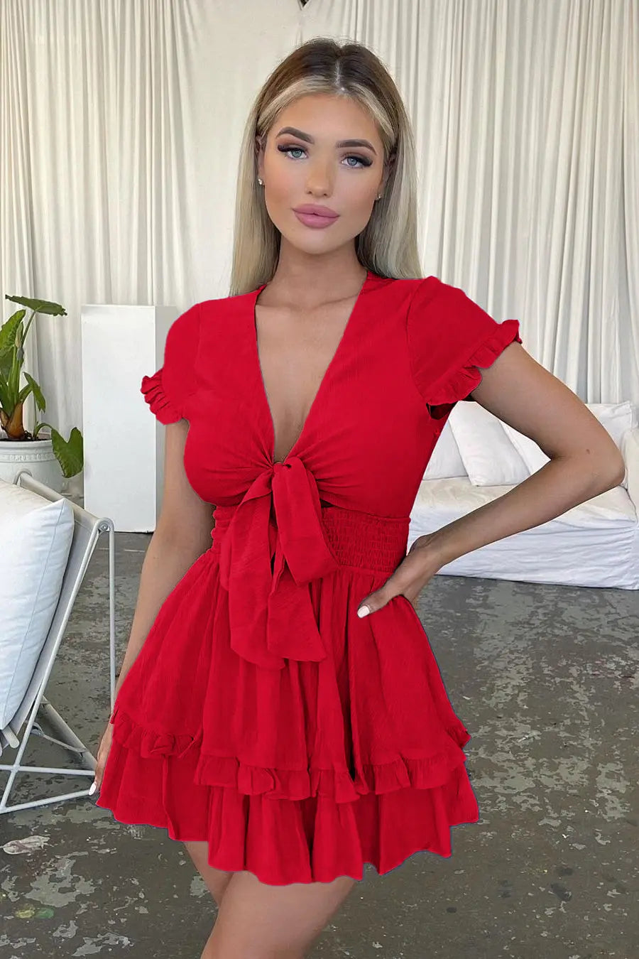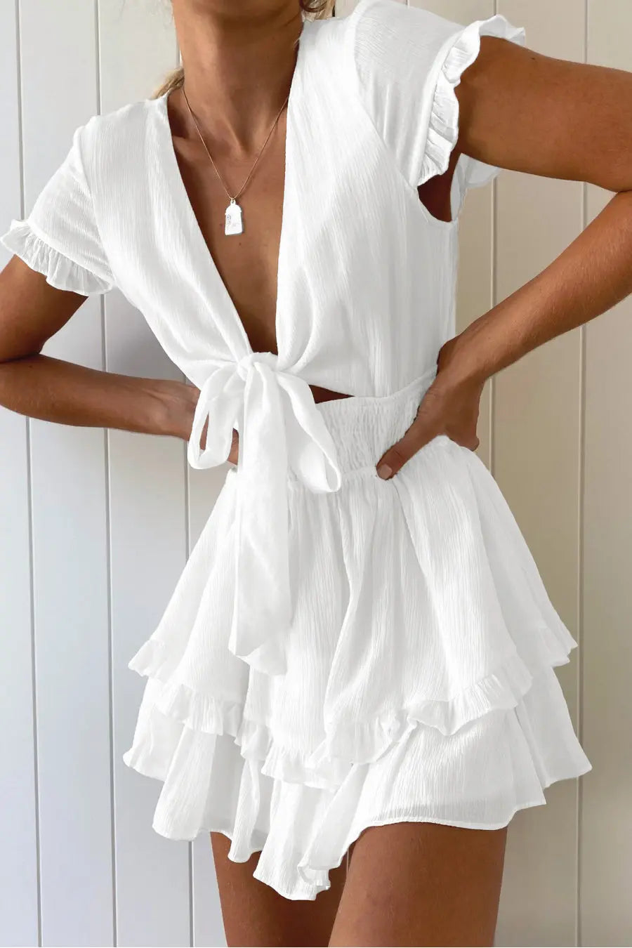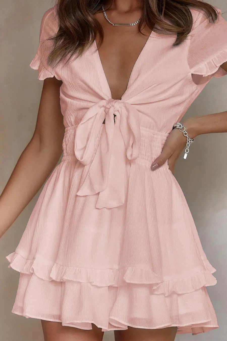 CLARA ist dein stilvoller Begleiter für heiße Sommertage. Dieses Mini-Sommerkleid aus leichtem Chiffon punktet mit einem schmeichelhaften V-Ausschnitt, kurzen Ärmeln und einem verspielten Rüschen-Saum. Der A-Linien-Schnitt sorgt für angenehme Bewegungsfreiheit und eine feminine Silhouette. Ob am Strand, beim Stadtbummel oder bei einem Fotoshooting – CLARA passt zu jedem Anlass.