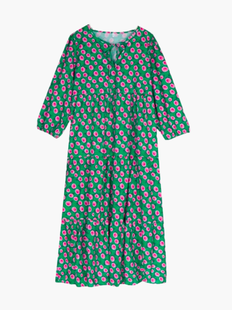 Genießen Sie die Anziehungskraft des Kleides Giselle, das Komfort mit zeitloser Eleganz verbindet. Das Muster verleiht ihm einen Hauch von Charme, perfekt für jede Gelegenheit, von legeren Momenten bis hin zu besonderen Anlässen. Das mit Sorgfalt und Liebe zum Detail gefertigte Giselle Kleid garantiert Stil und Komfort und ist somit ein unverzichtbares Kleidungsstück.