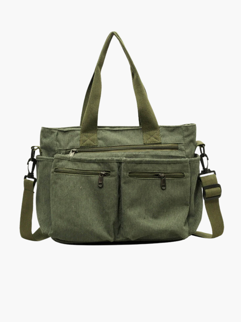 2. Praktisches Design - Verstellbare Schultergurte, großes Hauptfach mit Reißverschluss zum Verstauen von iPad, Geldbörse, Make-up, Taschentüchern, Regenschirm, Flasche, Zeitschriften, kleinen Dokumenten und mehr. Eine kleine Reißverschlusstasche und eine offene Tasche auf der Innenseite für Telefon, Schlüssel, Karten, Kleingeld, etc. Drei Reißverschlussfächer auf der Vorderseite dieser Rippensamttasche, um Ihre verschiedenen Bedürfnisse zu erfüllen.