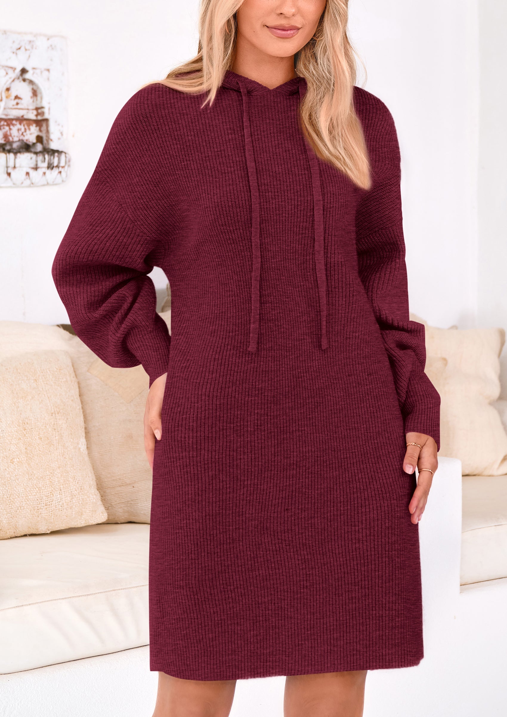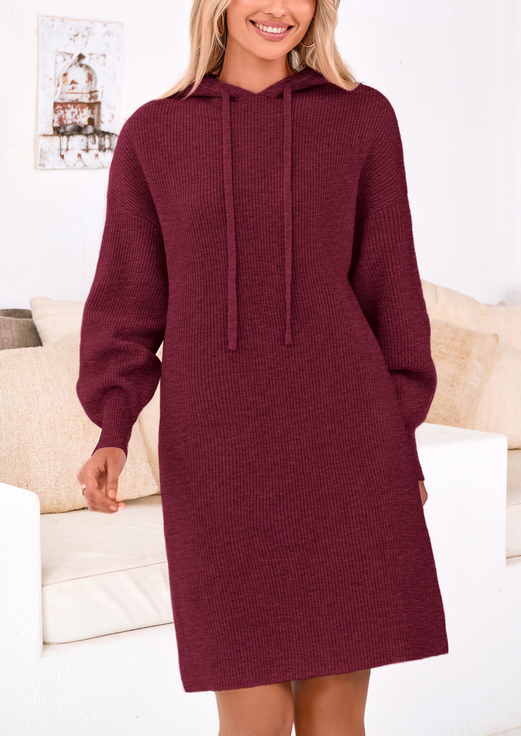 Design: Strickkleid mit Kapuze, Kordelzug, Oversized-Schnitt, Langarm