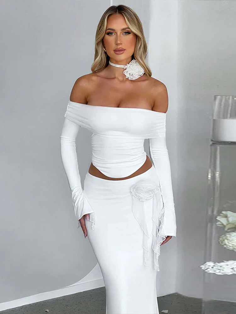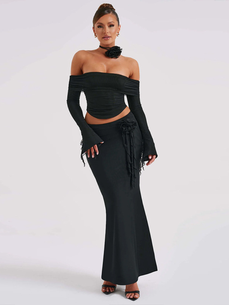 Diese zweiteilige Off-Shoulder Set ist ein echter Hingucker! Mit ihrem figurbetonten Design, den zarten Blumen-Applikationen und dem eleganten Schnitt verleiht sie dir eine unwiderstehliche Ausstrahlung. Perfekt für besondere Anlässe, Dinner-Dates oder luxuriöse Events.